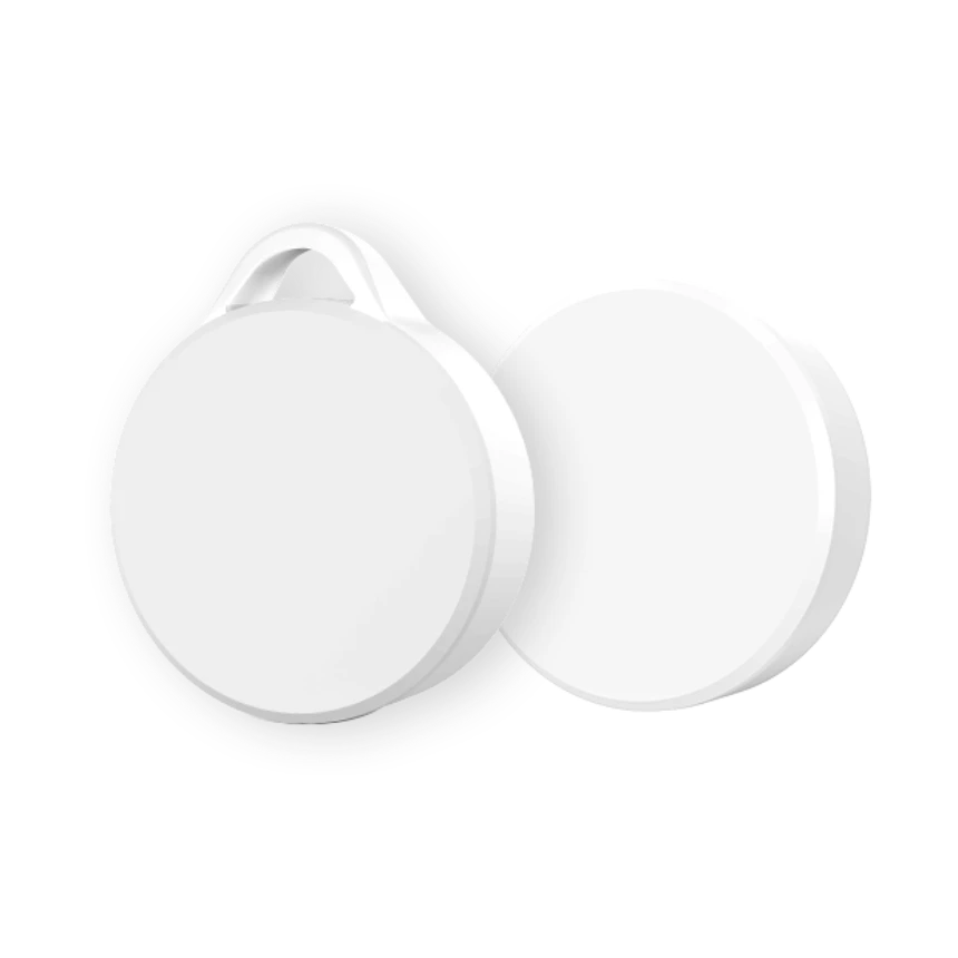 Tracklet uses compact BLE 5.0 beacons with up to 50 m of indoor range and a 3–4 year battery life. Each tag has a unique ID and a printed number for visual reference. The built-in loop fits any standard key ring, and tags are water-resistant and built for daily key ring use.